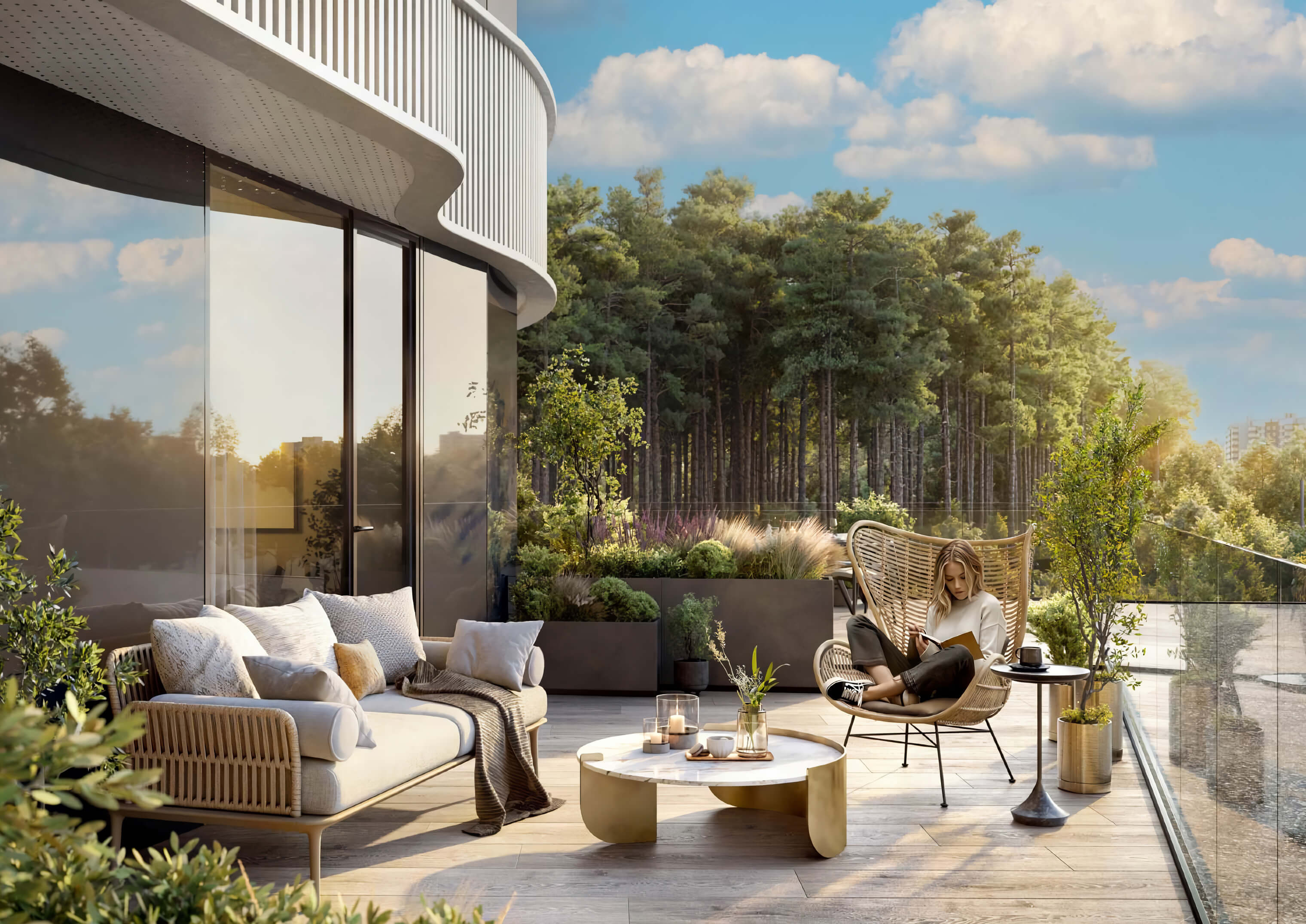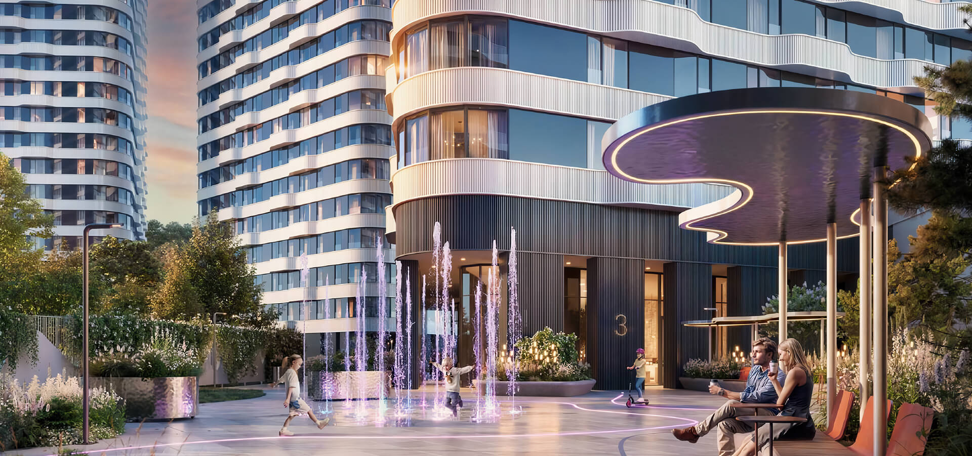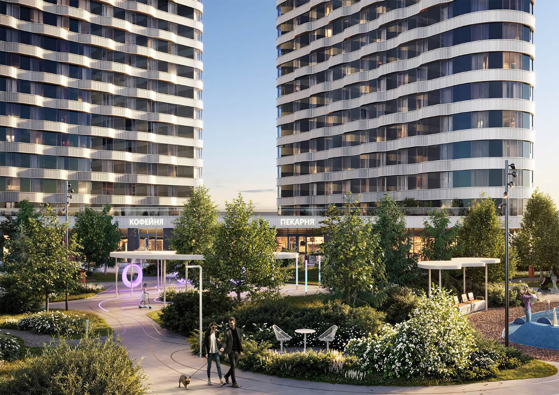 Территория комплекса спроектирована так, чтобы сочетать инновации и природу. Закрытый двор для жителей включает прогулочные зоны, лаунж-пространства, ароматный сад и игровые площадки для детей разного возраста.
